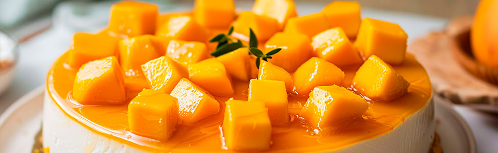 6. Para la cobertura, licúa el mango con el azúcar y el jugo de limón.