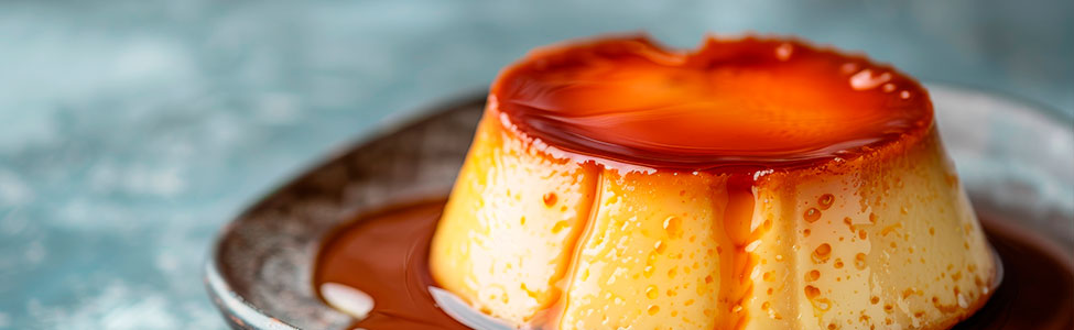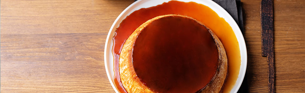 1. Derrite el azúcar en una olla pequeña a fuego medio hasta que torne un color ámbar y viértelo en un molde para flan.