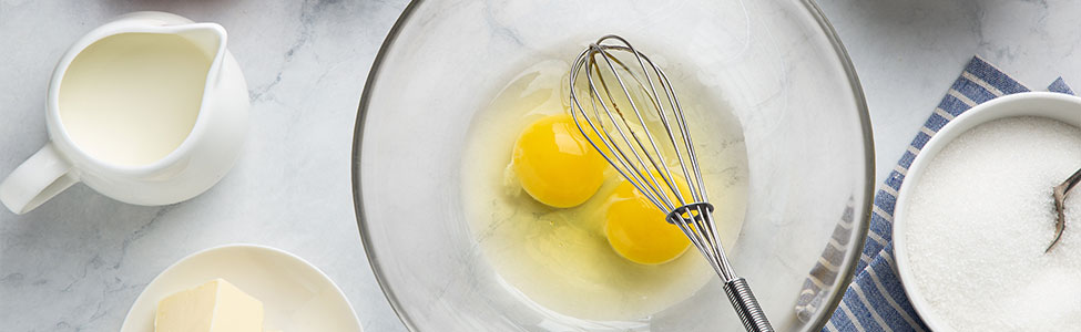 3. En otro bowl, bate los huevos con el aceite, la miel, un chorrito de Vainilla Molina y la leche hasta que quede uniforme.