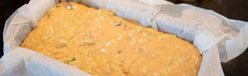 6. Vierte la mezcla en el molde, alisa la superficie y hornea por 35 a 40 minutos o hasta que al insertar un palillo, éste salga limpio.