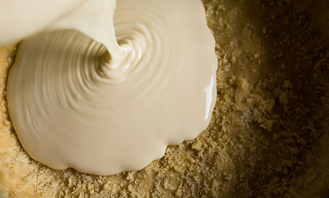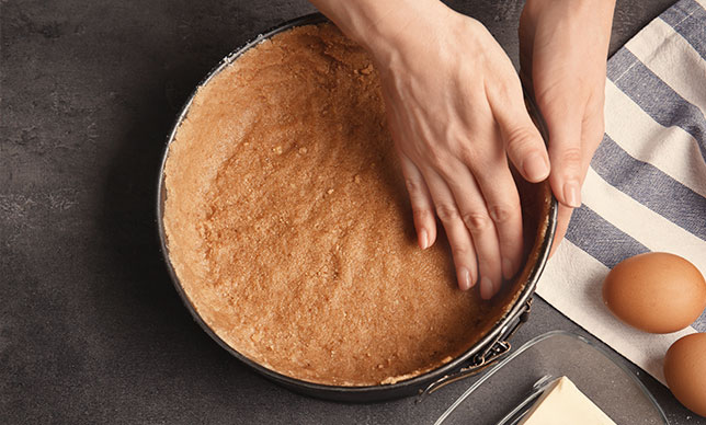 2. Cubre el fondo de un molde desmontable con la mezcla, presionando bien para que quede compacta.