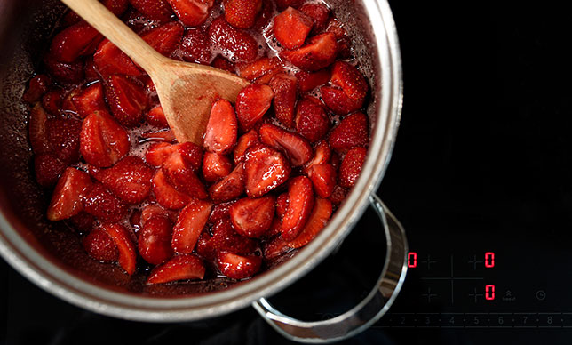 12. En una cacerola, combina los frutos rojos, la azúcar refinada y el jugo de limón.
