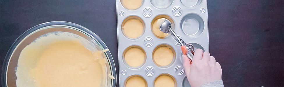 6. Llena los moldes para muffins aproximadamente hasta 2/3 de su capacidad con la masa.