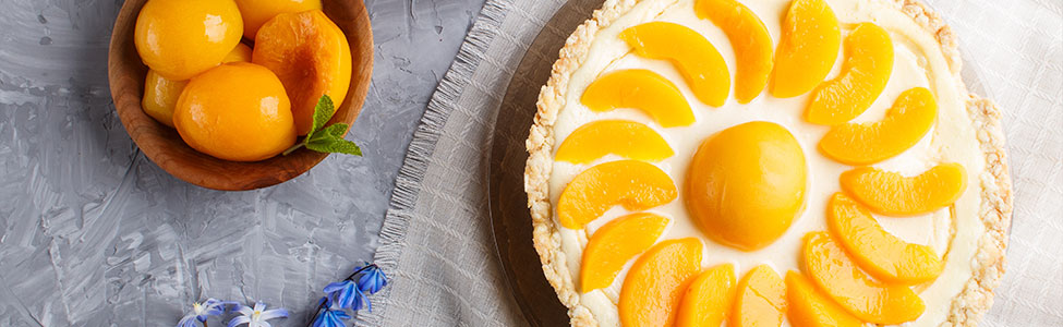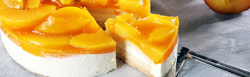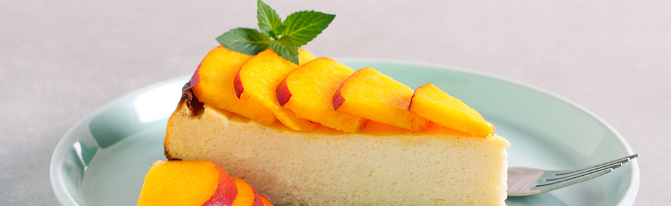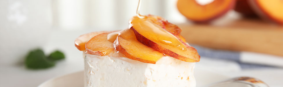 Coloca las rebanadas de durazno sobre el cheesecake ya firme, decorando a tu gusto.