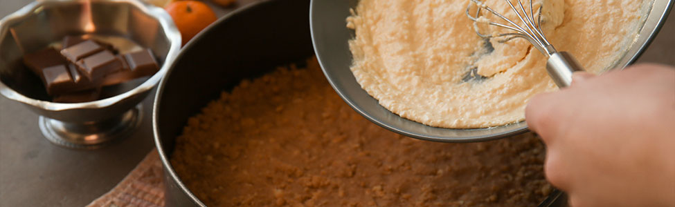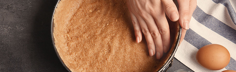 Coloca la mezcla en el fondo de un molde desmontable y presiona firmemente para formar una base compacta.